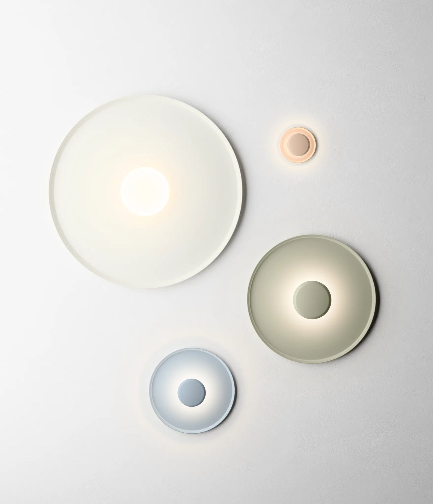 Des formes douces et sphériques dotées d'une lumière chaude caractérisent la collection Top. Son épicentre flamboyant est entouré par un anneau plus grand, qui diffuse la lumière sur la pièce.
