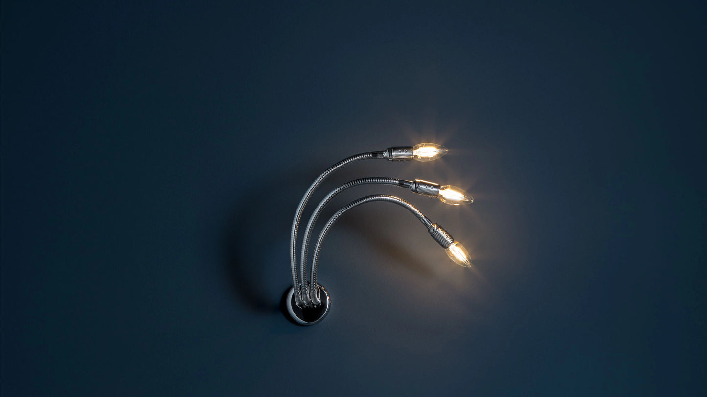 La série Turciù, la première lampe signée par Enzo Catellani, tire son nom du geste de pouvoir tordre et modeler à volonté les bras flexibles de ces lampes, en mettant surtout en valeur la possibilité d’interaction avec l’objet-sujet lampe.