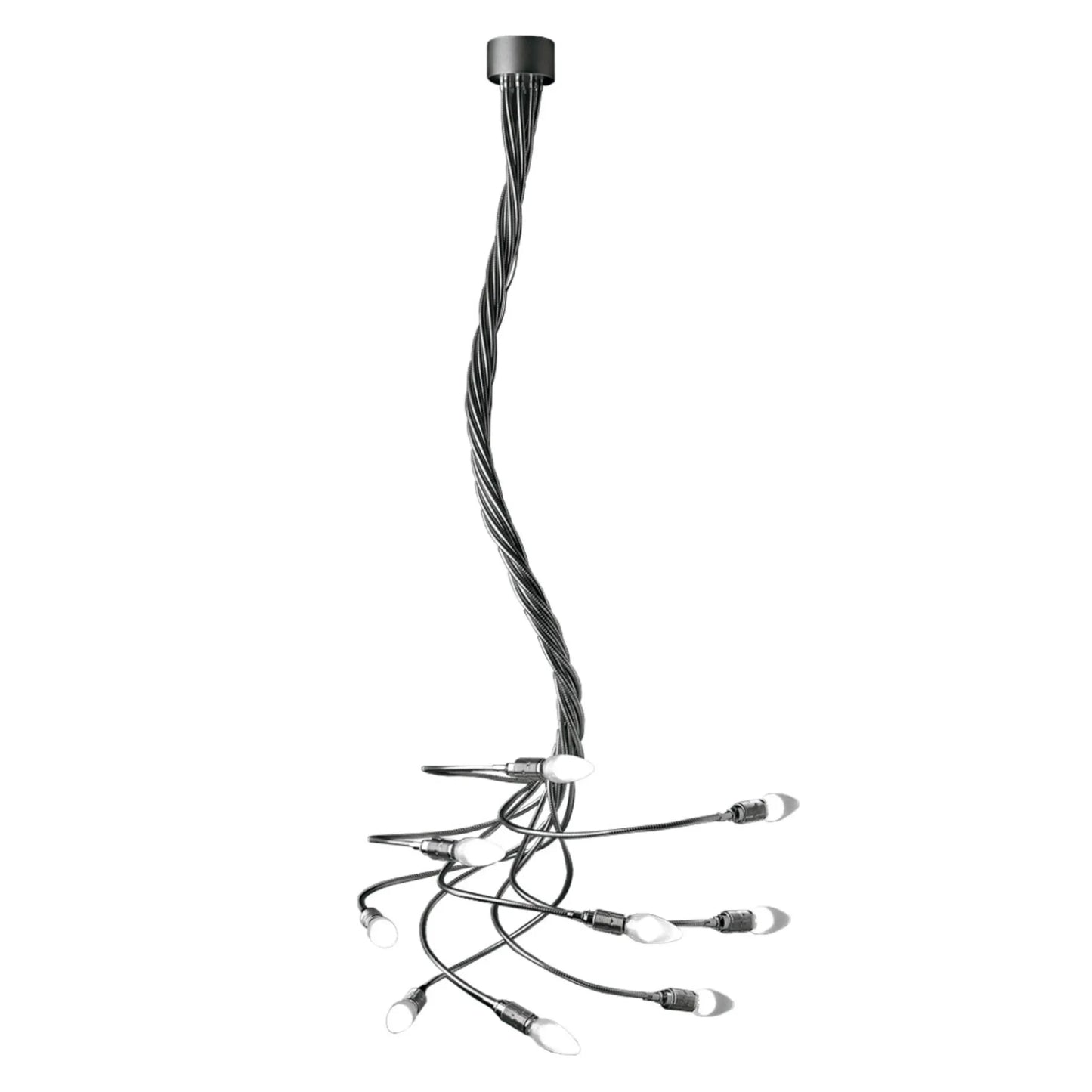 La série Turciù, la première lampe signée par Enzo Catellani, tire son nom du geste de pouvoir tordre et modeler à volonté les bras flexibles de ces lampes, en mettant surtout en valeur la possibilité d’interaction avec l’objet-sujet lampe.