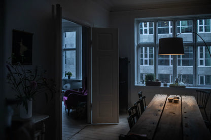 Le lampadaire Twiggy peut remplacer une suspension si vous n'avez pas d'arrivée électrique au plafond. Il éclaire vers le bas et diffuse une lumière très agréable, pouvant être modulée à l'aide d'un variateur. Son écran de protection empêche l'éblouissement. Des contrepoids vous permettent de gérer la hauteur de l'abat-jour.
