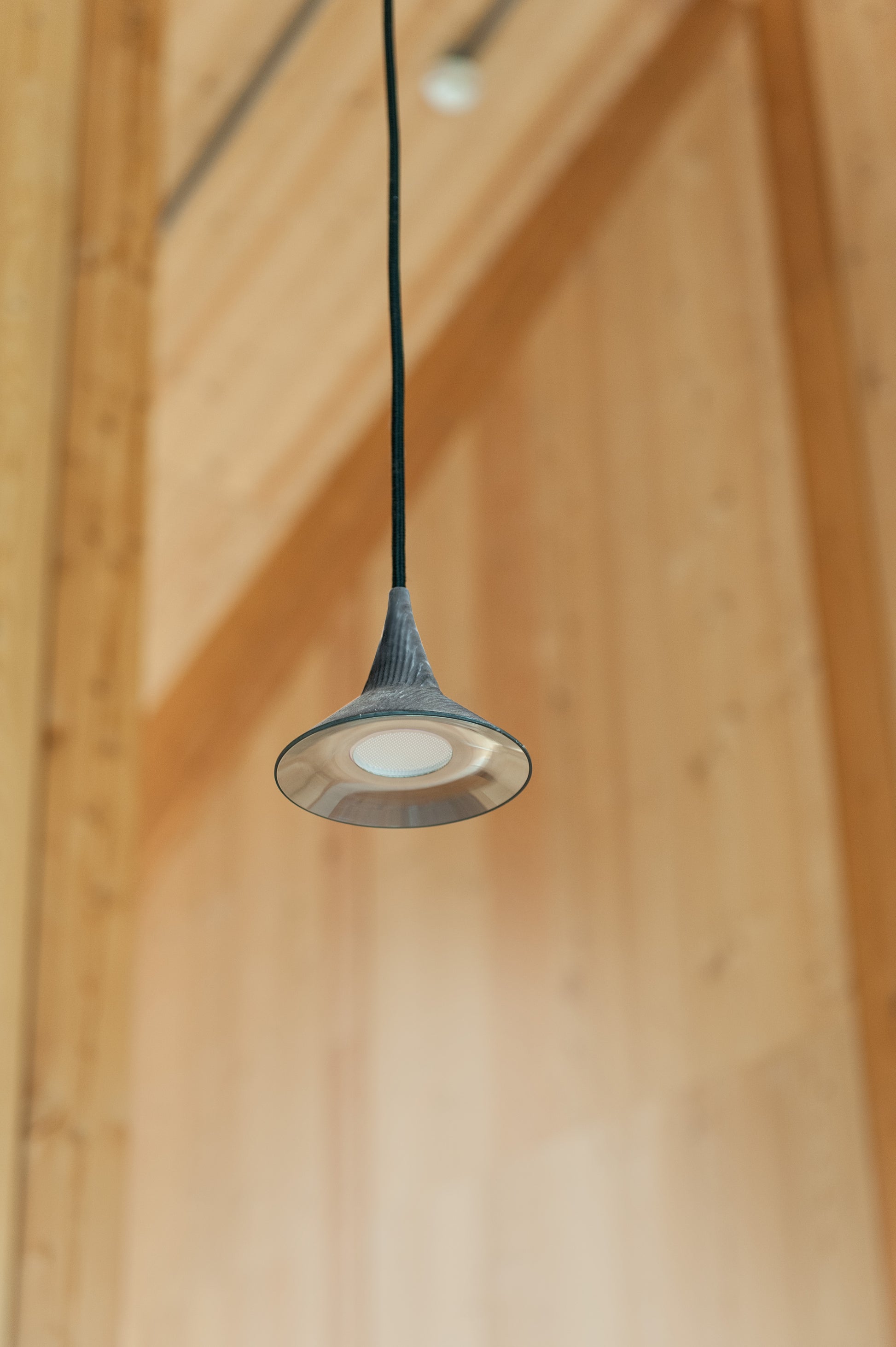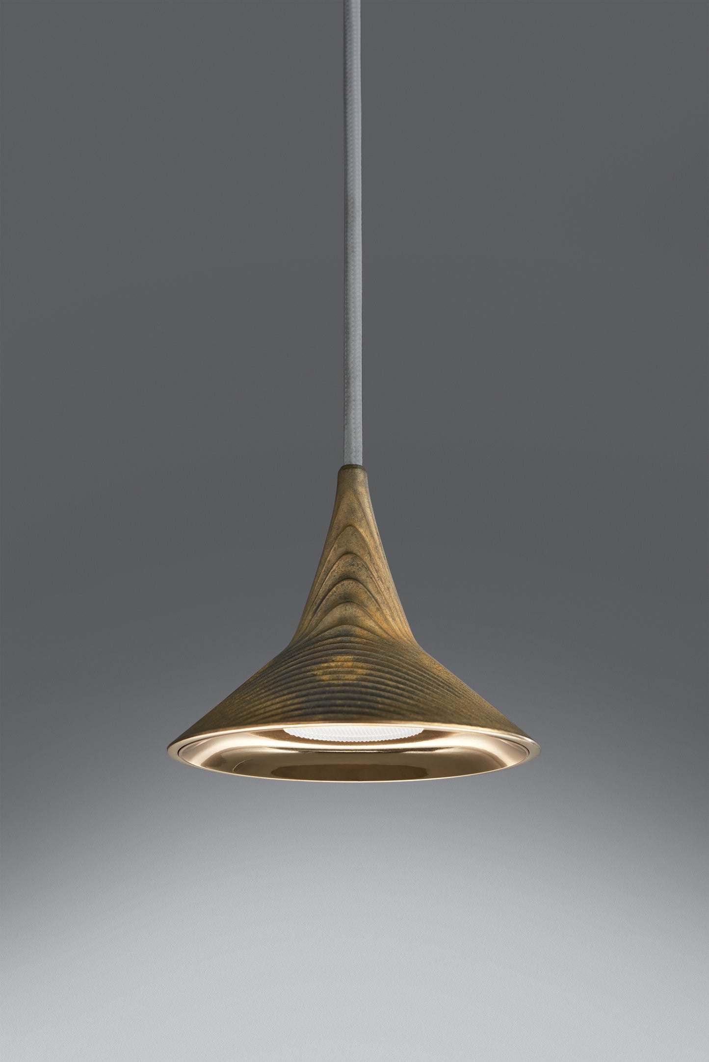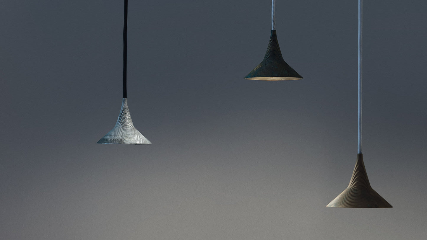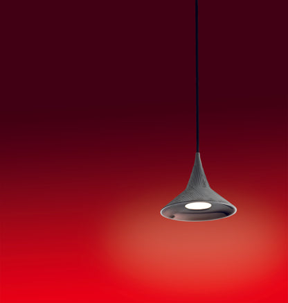 Suspension conçue pour des installations muséales qui conjugue le charme esthétique d’un objet d’autrefois à une haute valeur technologique et technique. Matériaux : corps en aluminium ou laiton; rosace en techno-polymère ; plaque de fixation en acier. Spécificités : la source lumineuse est une LED COB ; le flux lumineux est aussi contrôlé par une lentille en polymère à haute efficacité optique étudiée pour concentrer le faisceau lumineux. Le corps de la lampe a une double fonction : dissiper la chaleur produite par la source et maitriser le flux lumineux.