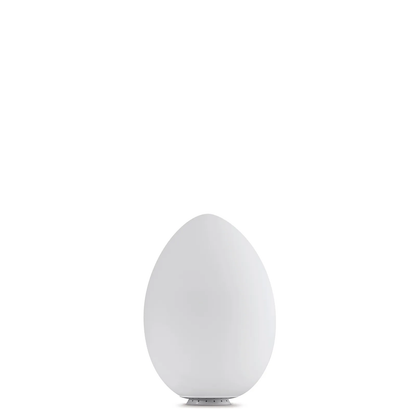 Une icône du design des années 70. Véritable objet de design, la lampe Uovo est un grand classique de la maison d'édition FontanaArte. Dessinée en 1972, elle a gardé toute son élégance et son pouvoir de séduction. Pure et étonnante par sa forme ovoïdale, Uovo est à la fois une lampe de table, de bureau, d'ambiance, à poser au sol par exemple. Tout en verre soufflé satiné blanc, elle diffuse une lumière apaisante. Proposée dans trois dimensions différentes, il est très élégant d'associer plusieurs modèles pour composer un décor lumineux.