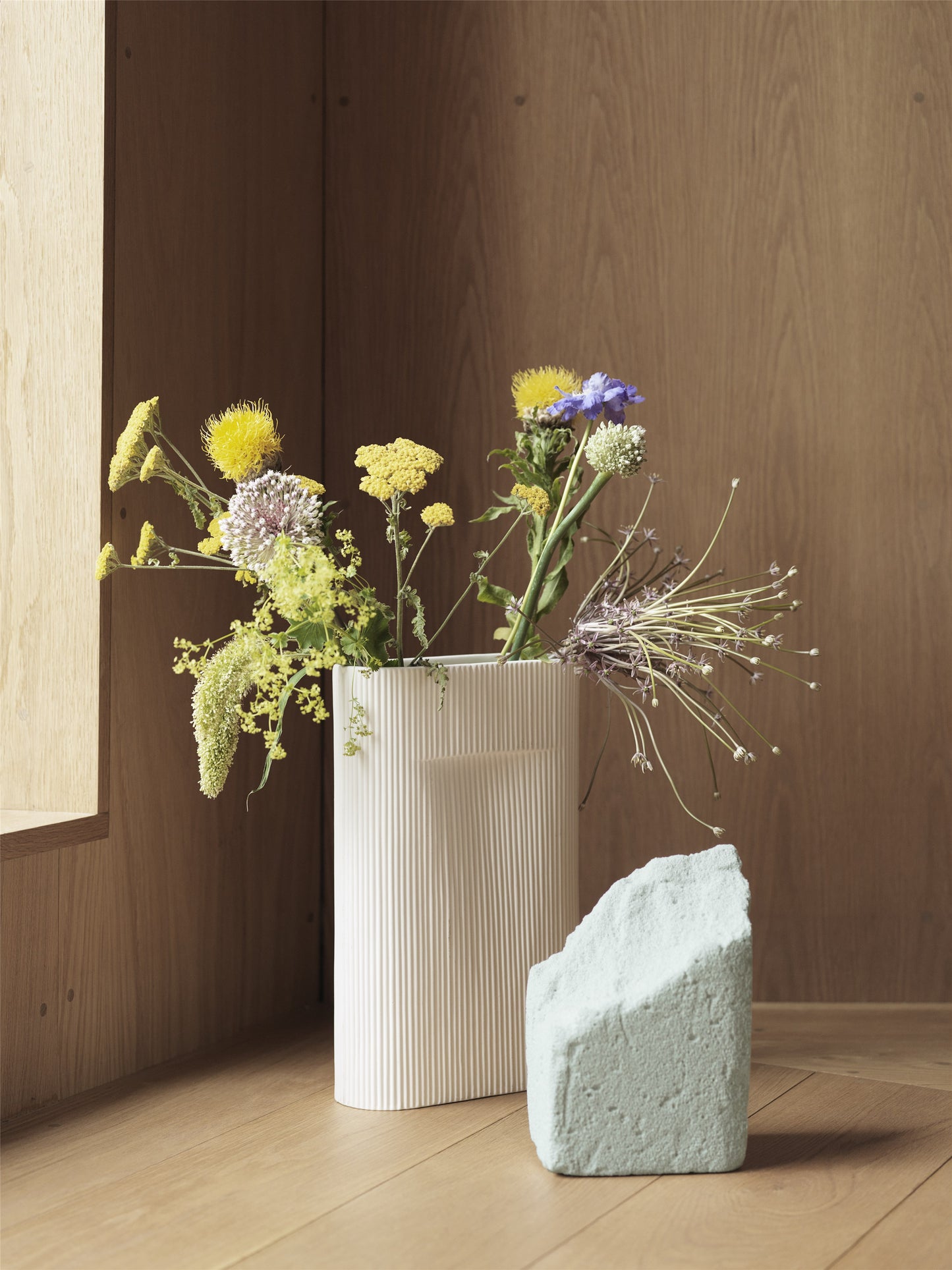 Courbe et allongé, le vase Ridge présente de fines stries verticales sur l'ensemble de sa surface, lui donnant ainsi contenance et dimensionnalité. Véritable création architecturale, ce vase haut fabriqué à la main sublime tout intérieur contemporain. Garni d'une élégante composition florale ou simplement utilisé comme objet de décoration, ce vase design trouve facilement sa place sur une console, une table de repas ou un comptoir d'accueil.