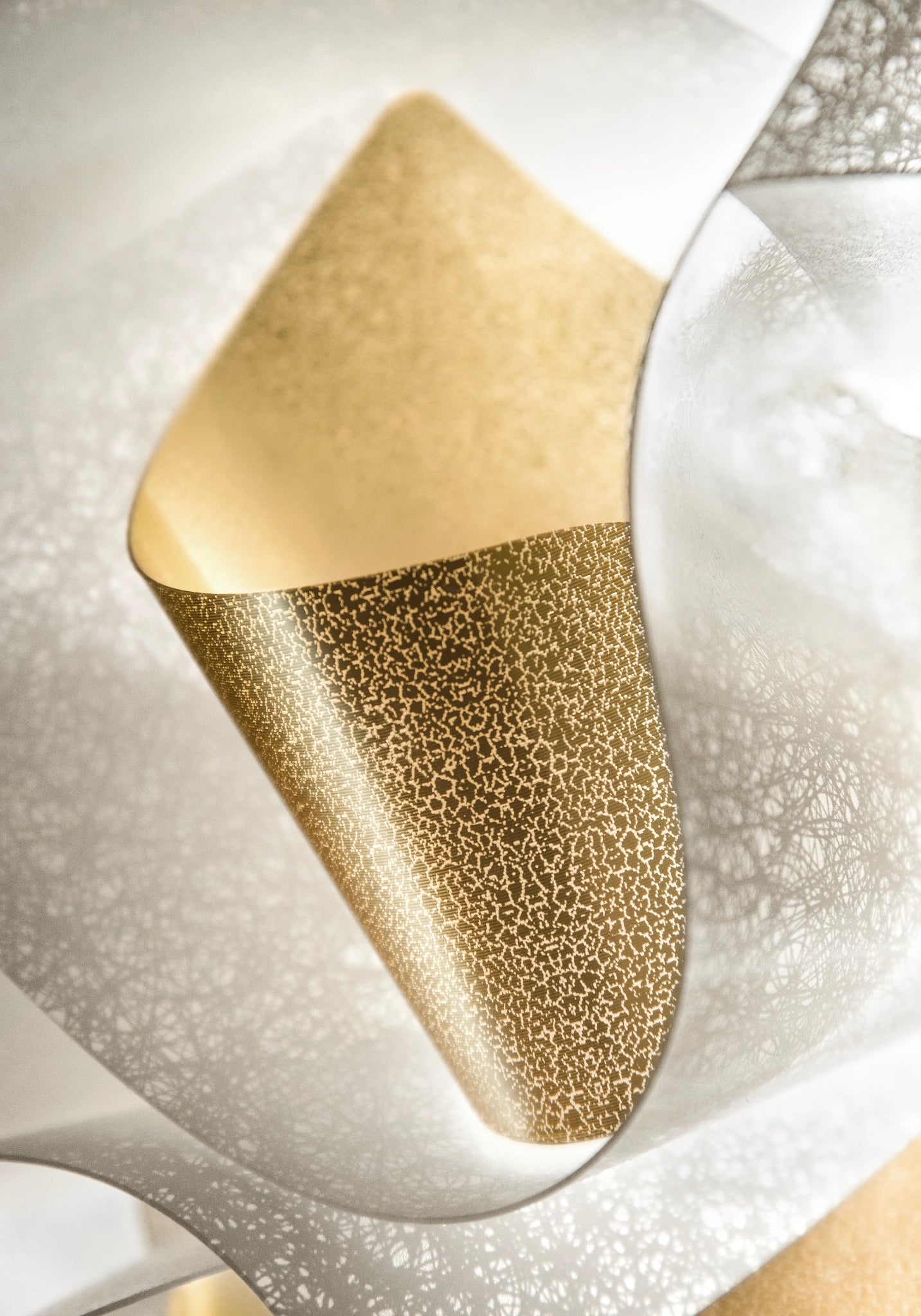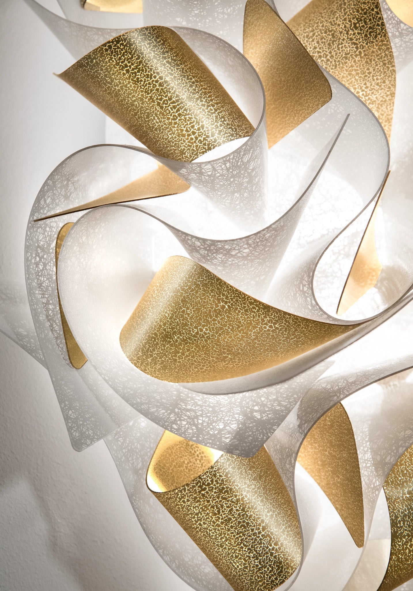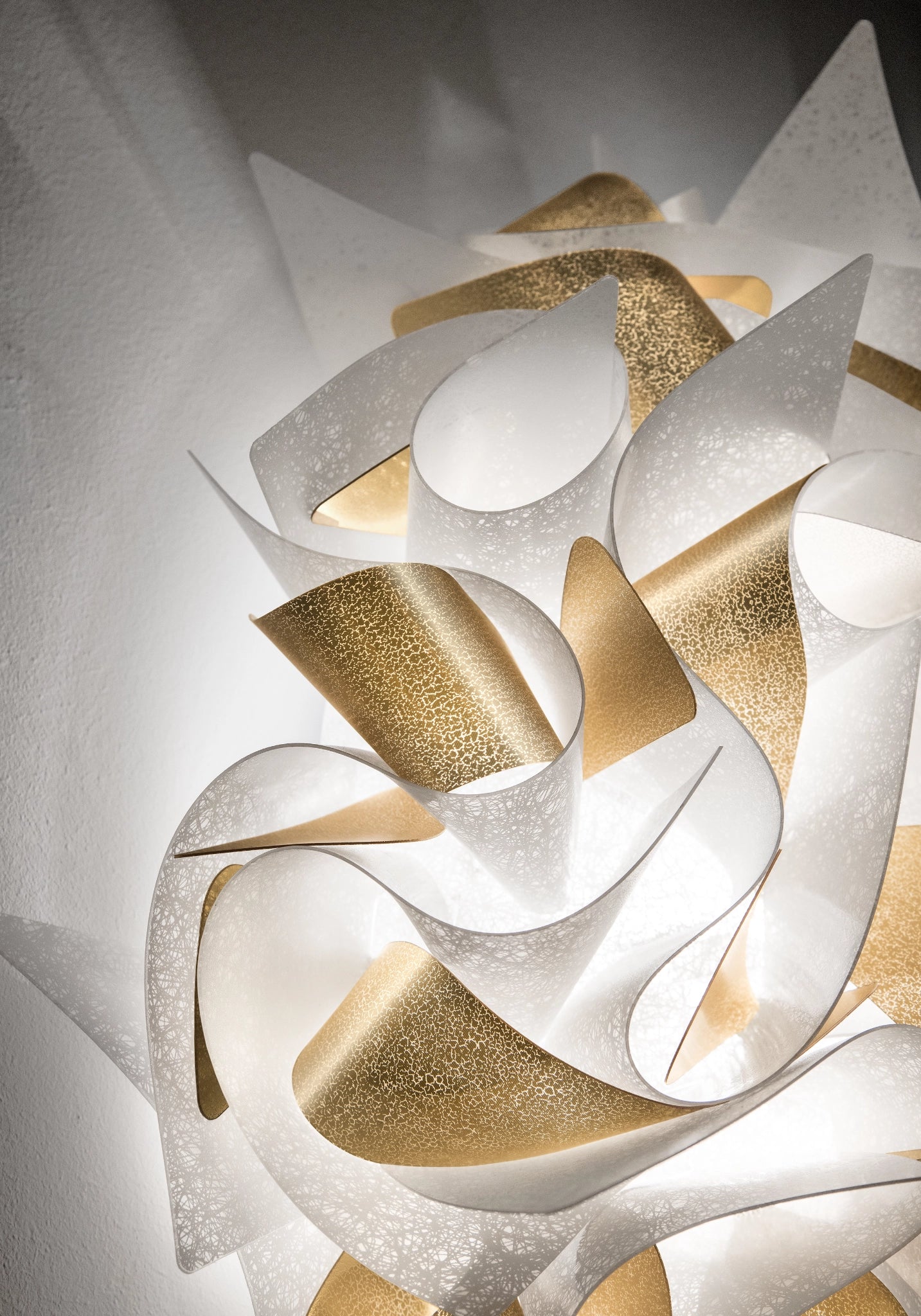 Telle une création haute couture, la Veli Aurea Slamp est entièrement façonnée à la main, garantissant une attention minutieuse à chaque détail. Tel un vêtement gracieux, elle enveloppe la lumière avec délicatesse, magnifiant chaque espace grâce à ses couches opalescentes d’Opalflex®. La couleur du cordon existe en rouge ou transparente.