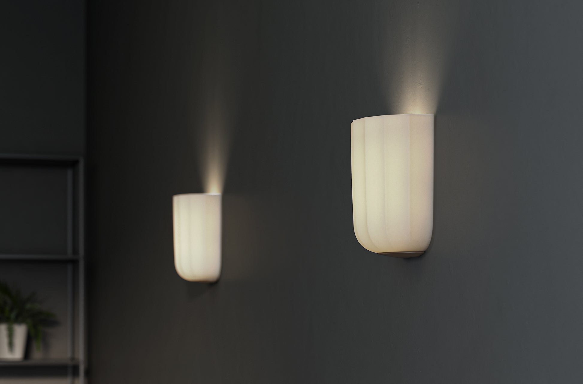 Inspirée de l'architecture néoclassique, cette applique murale en verre opale cannelé projette une lumière douce. Sa base nette moulée sous pression se décline en nickel mat ou en bronze. Elle est conçue dans un esprit de durabilité. Modulable, elle convient aux espaces communs ainsi qu'aux chambres d'hôtel et aux couloirs.
