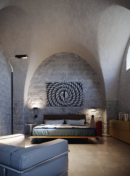 Une applique murale est un luminaire directement fixé au mur afin de diffuser une lumière localisée : celle-ci peut alors parsemer les murs d’un couloir, d’un salon, ou encore être installée au-dessus de vos tables de chevet. Une applique classique repose simplement sur un support sur lequel est fixé un abat-jour. L’applique murale, au-delà de sa fonction esthétique, est également un élément de décoration en soi, qui participe à l’ambiance de votre espace, en allant parfois jusqu’à orner les murs à la manière d’une œuvre picturale. Le modèle Lederam W par CATELLANI & SMITH, l’applique O2 par HENRI BURSZTYN ou encore la Org wall par DCW EDITIONS s’imposent comme des pièces maîtresses dans un intérieur, jouant un rôle qui va bien au-delà du simple luminaire.