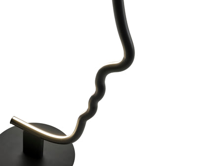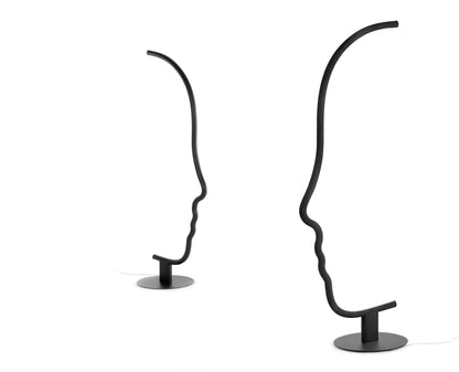 Inspirée des sculptures grecques classiques et des signes graphiques contemporains de Calder et de l’art Bauhaus, Vis à vis rappelle un profil d'humain. Une structure en bois massif peint en noir avec base en métal. Forme clairement reconnaissable au signe graphique fort car une sculpture se veut une micro-installation domestique, conservant les qualités fonctionnelles de la lampe.