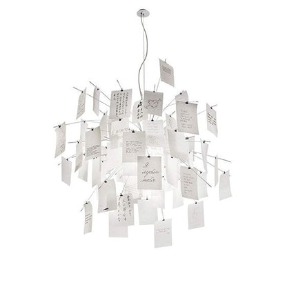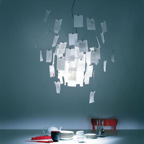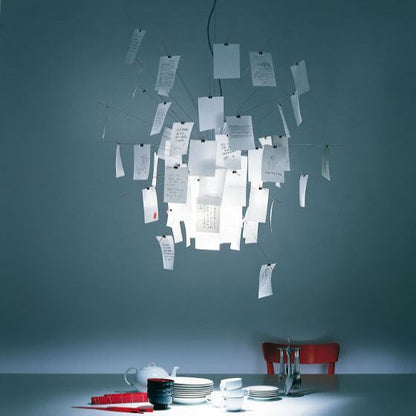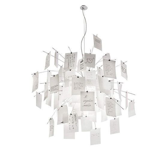 La suspension Zettel'Z 6 est la version plus petite de sa grande sœur Zettel'Z 5. Imaginée en 1997 par Ingo Maurer, ce luminaire d'exception est composée de 40 feuilles de papier japonais qui créent avec la source de lumière des effets amusants et originaux. La suspension Zettel'Z 6 est livrée avec 40 feuilles déjà imprimées et 40 autres feuilles vierges pour vous permettre de laisser cours à votre créativité : poème, dessins, citations et de personnaliser complètement votre luminaire.