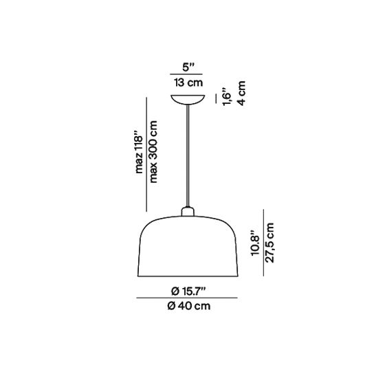Dimensions: Ø. 40cm - H. 27,5cm - Câble max. 300cm